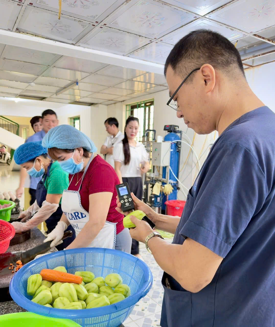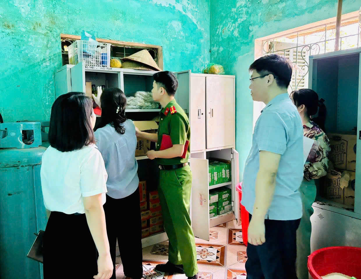 Một trong những nội dung quan trọng là việc thực hiện kiểm thực ba bước và lưu mẫu thức ăn theo quy định. Đây được xem là “lá chắn” quan trọng giúp kiểm soát chất lượng bữa ăn, đồng thời phục vụ công tác truy vết khi có sự cố liên quan đến an toàn thực phẩm. Ngoài ra, công tác vệ sinh dụng cụ, khu vực chế biến và việc ghi chép sổ sách theo dõi cũng được Đoàn kiểm tra đánh giá chi tiết.