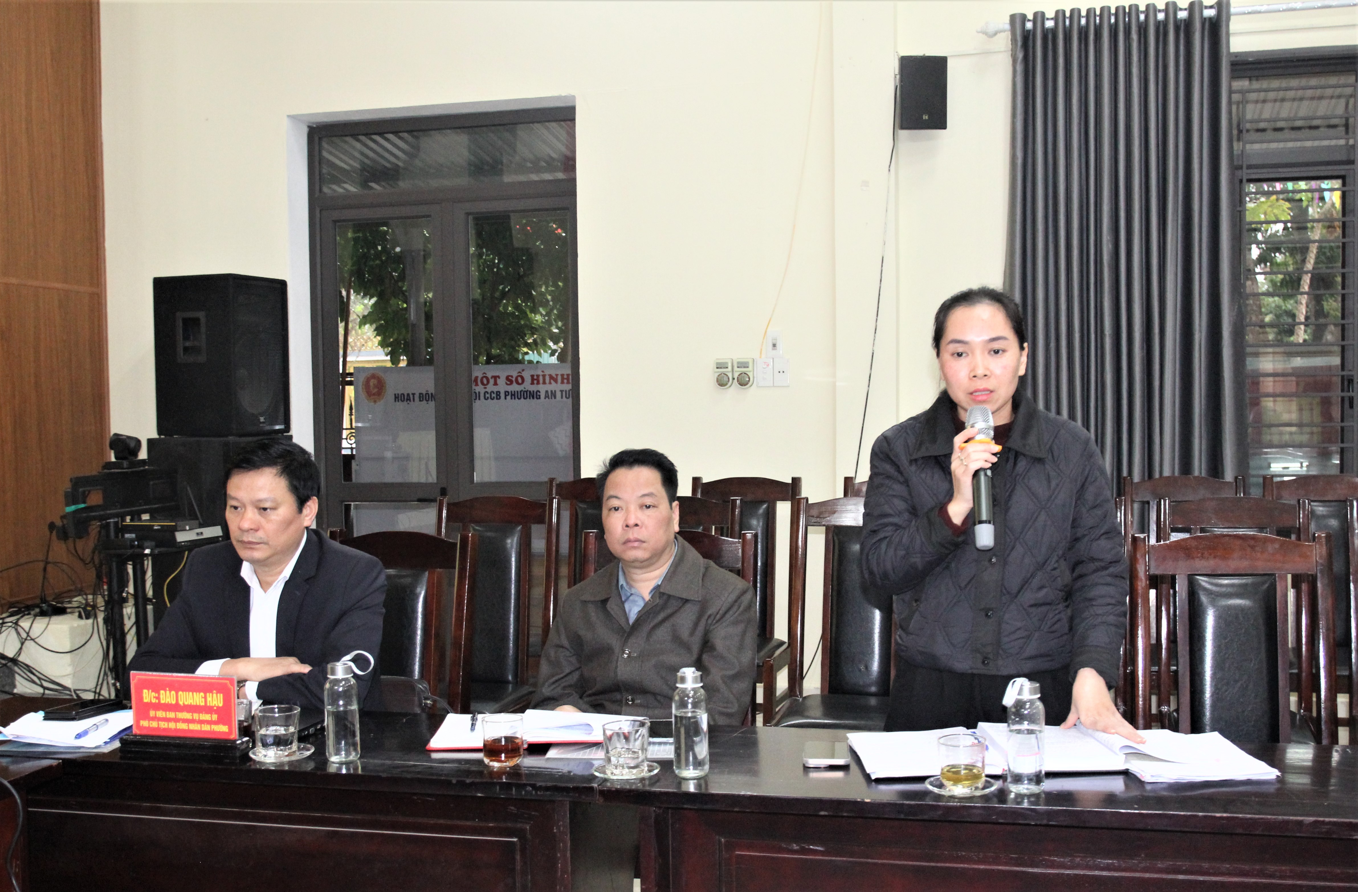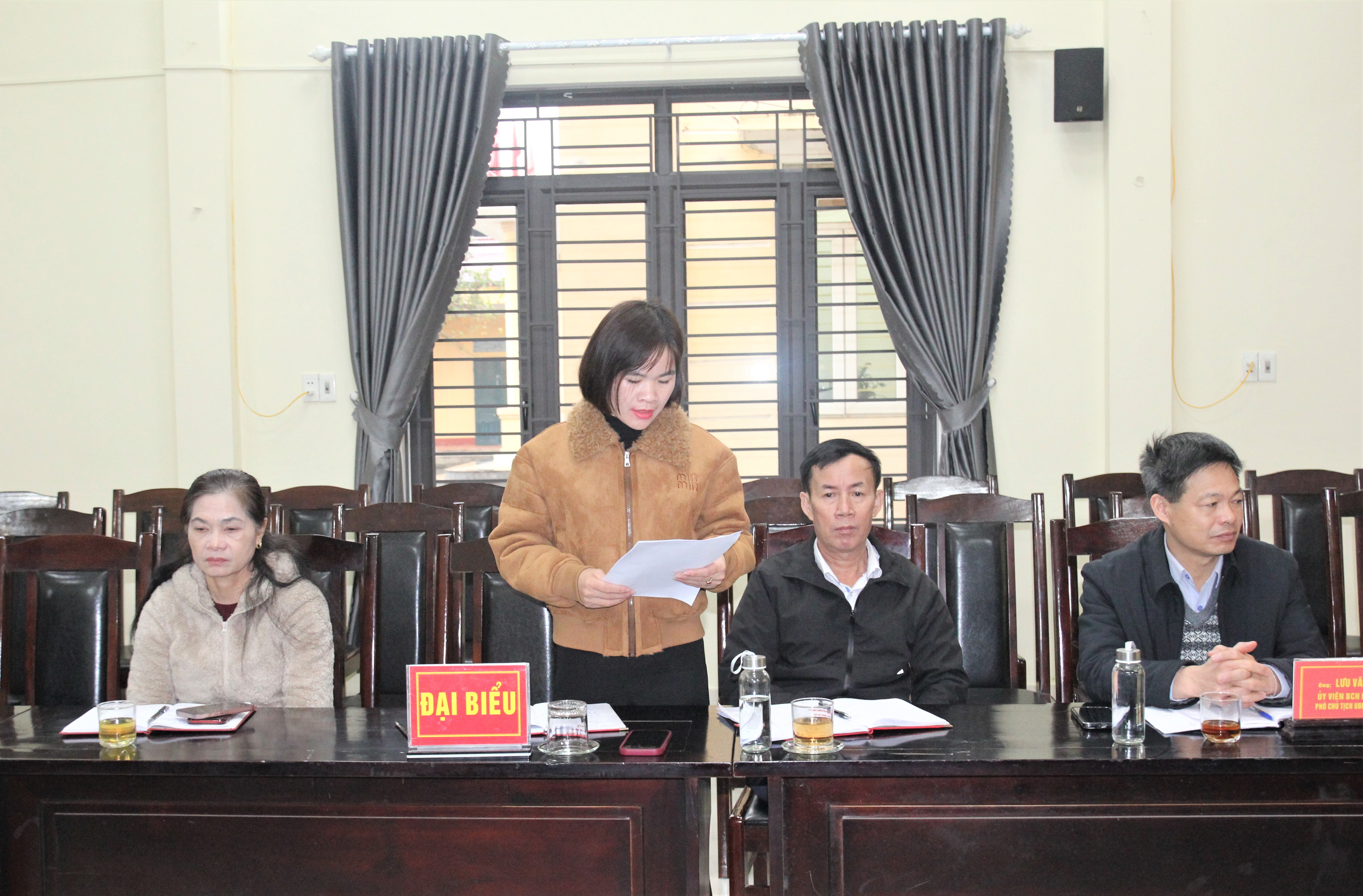 Đồng chí Nguyễn Thị Quỳnh, Phó Chủ tịch UB MTTQ phường, Chủ tích Hội Nông dân phường, Thư ký hội nghị thông qua biên bản hội nghị.