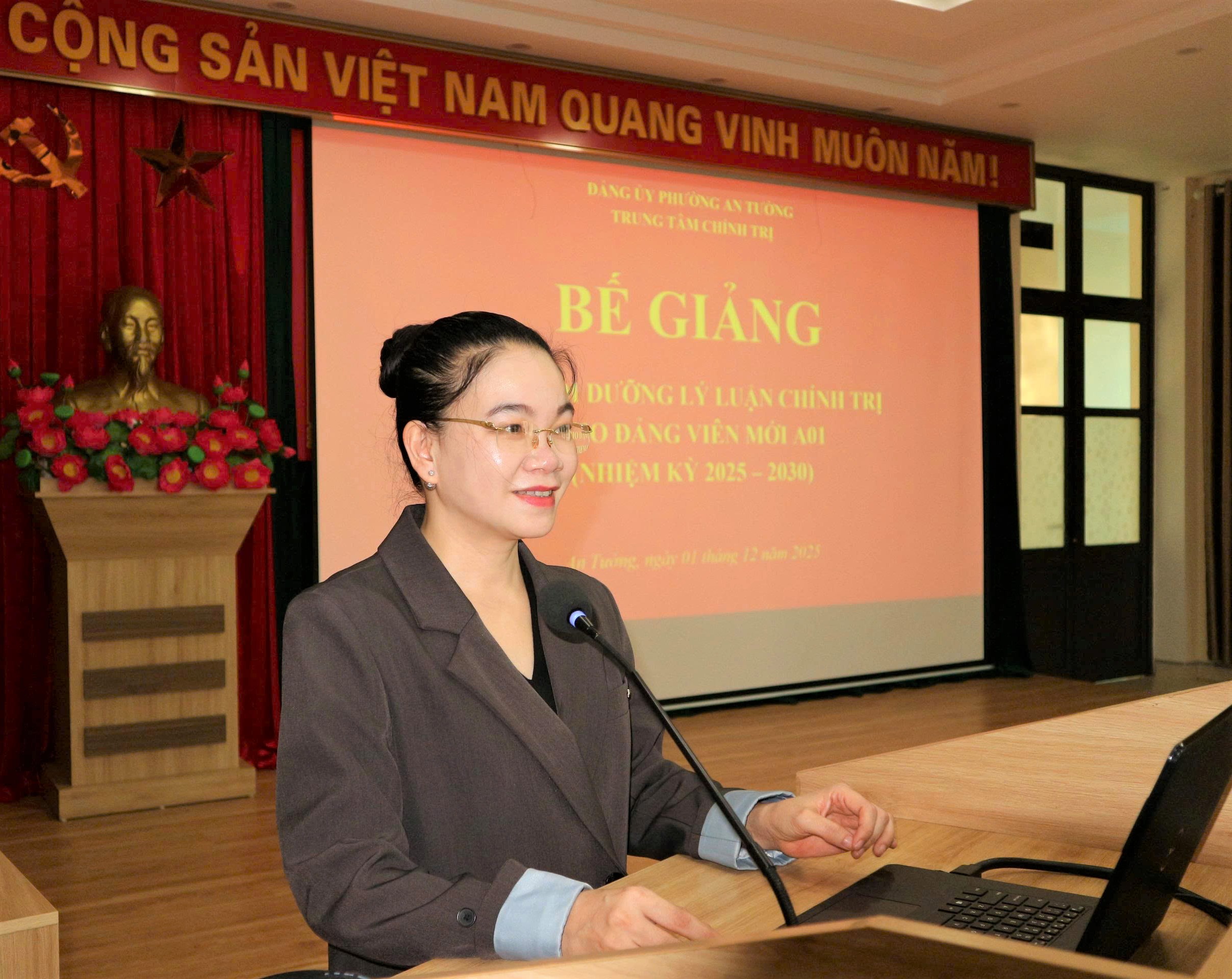 Phát biểu tại buổi Bế giảng, đồng chí Vũ Quỳnh Loan, Phó Bí thư Thường trực Đảng ủy, Giám đốc Trung tâm Chính trị An Tường chúc mừng kết quả học tập của các học viên và đề nghị mỗi đảng viên mới tiếp tục phát huy tinh thần tiên phong, gương mẫu, không ngừng tu dưỡng, rèn luyện phẩm chất chính trị, đạo đức, lối sống; tích cực học tập nghị quyết, chủ trương của Đảng; nâng cao năng lực công tác để hoàn thành tốt nhiệm vụ được giao./.