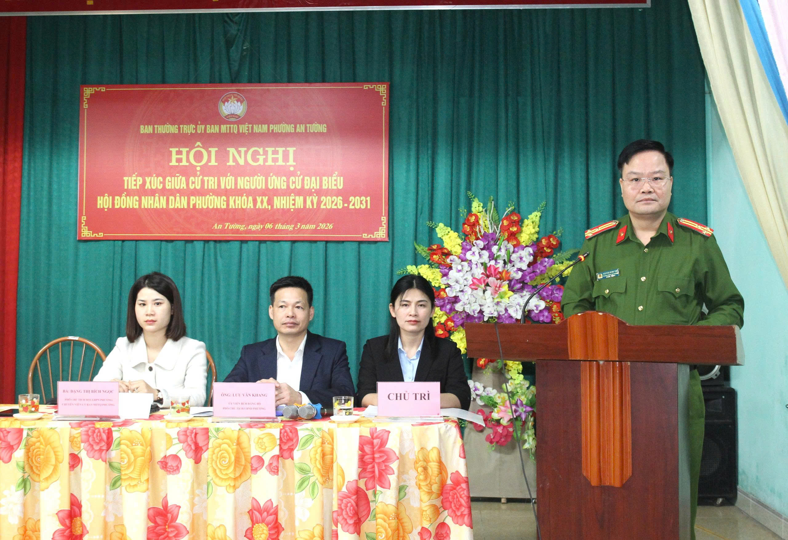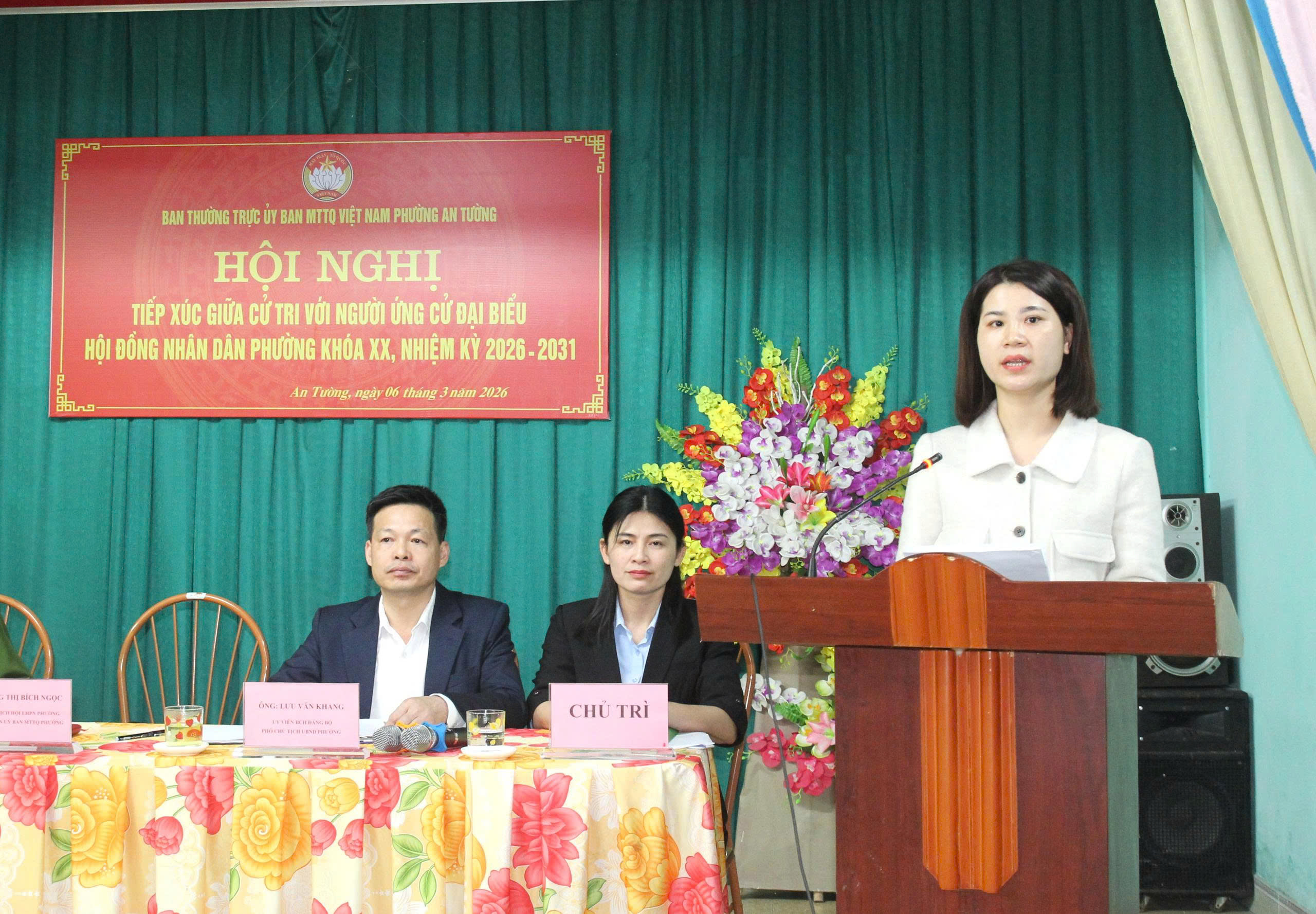 Các ứng viên ứng cử đại biểu HĐND phường An Tường khóa XX, nhiệm kỳ 2026 – 2031 dự Hội nghị tiếp xúc cử tri tại khu vực bỏ phiếu số 23, đơn vị bầu cử số 6 đại biểu HĐND phường.