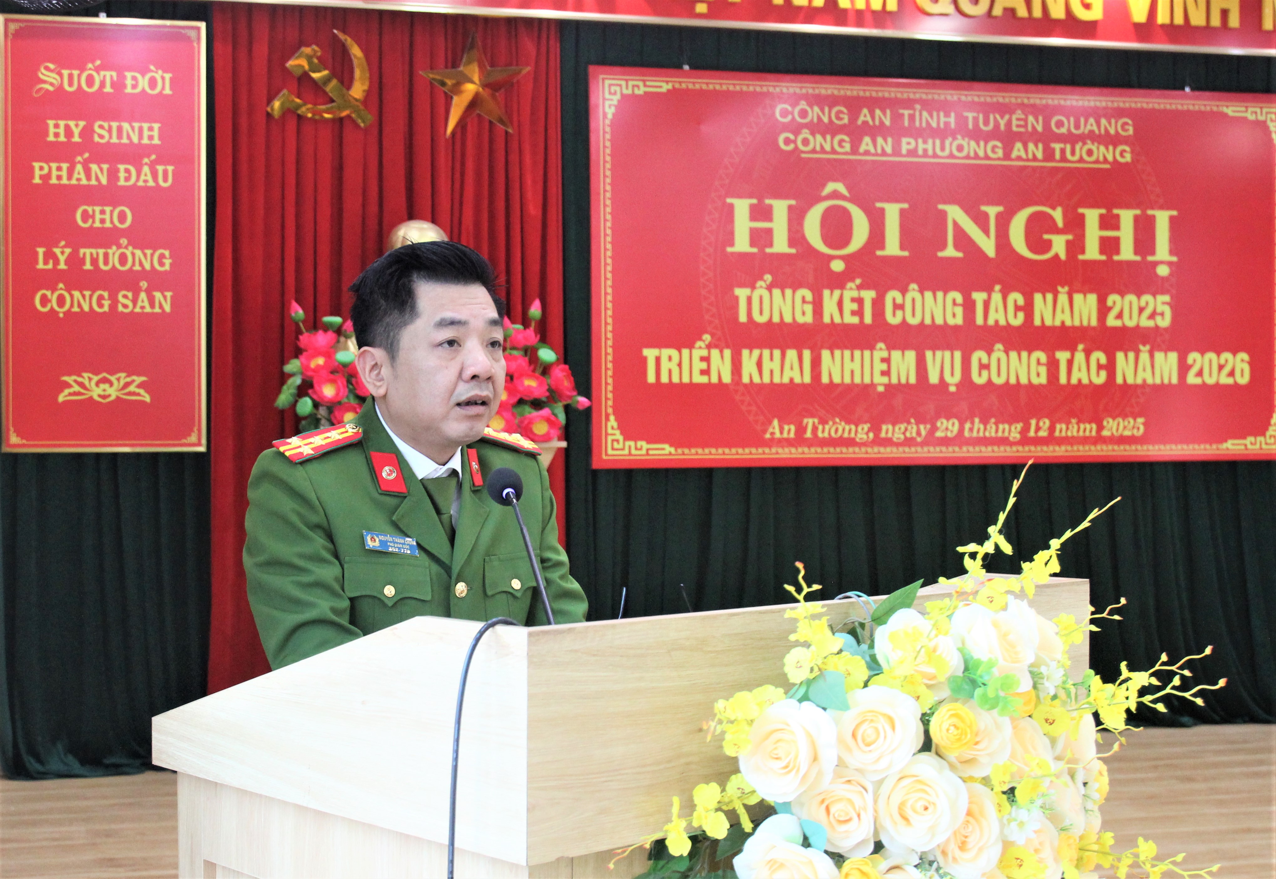 Phát biểu chỉ đạo tại Hội nghị, lãnh đạo Công an tỉnh và lãnh đạo Thường trực Đảng ủy phường ghi nhận, biểu dương tinh thần trách nhiệm, sự nỗ lực, quyết tâm của tập thể Công an phường An Tường. Mặc dù còn một số mặt công tác chất lượng, hiệu quả chưa đáp ứng đầy đủ yêu cầu nhiệm vụ trong tình hình mới; cơ sở vật chất, điều kiện làm việc còn khó khăn, song những kết quả đạt được và sự nỗ lực của toàn lực lượng đã góp phần giữ vững ổn định xã hội, bảo đảm an toàn, thông suốt cho hoạt động của các cơ quan Đảng, chính quyền, mang lại sự bình yên, hạnh phúc cho Nhân dân trên địa bàn. Đồng thời, đề nghị trong năm 2026, lực lượng Công an phường cần tiếp tục gương mẫu quán triệt, triển khai các chủ trương chiến lược của Đảng; đổi mới tư duy, nâng cao chất lượng công tác nghiệp vụ, đẩy mạnh chuyển đổi số, cải cách hành chính; xây dựng đội ngũ cán bộ, chiến sĩ liêm chính – kỷ luật – chuyên nghiệp, đáp ứng tốt hơn yêu cầu, nhiệm vụ trong tình hình mới.