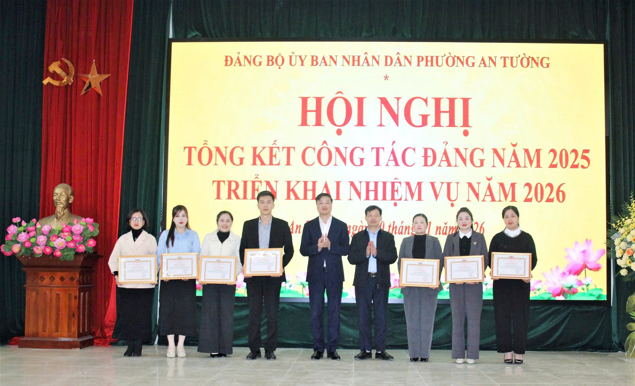 Nhân dịp này, Đảng bộ Ủy ban nhân dân phường đã trao tặng Giấy khen cho 01 chi bộ và 08 đảng viên đạt tiêu chuẩn “Hoàn thành xuất sắc nhiệm vụ” năm 2025./.