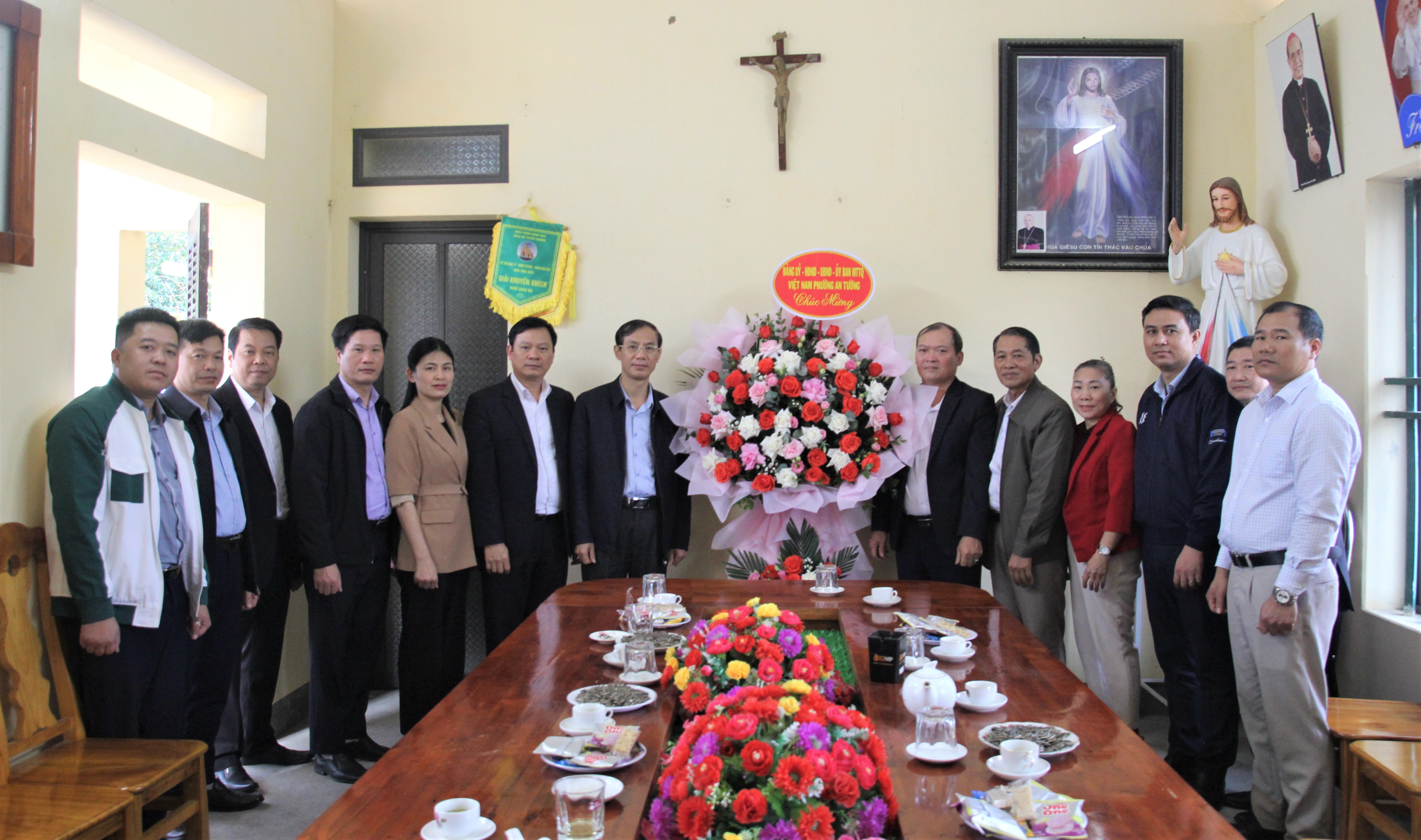 Đồng chí Nguyễn Đình Trung, Bí thư Đảng ủy, Chủ tịch HĐND phường An Tường cùng các đồng chí lãnh đạo HĐND, UBND, UB MTTQ phường và các đồng chí Ủy viên BTV Đảng ủy phường thăm, chúc mừng Giáo họ Trường Thi.
