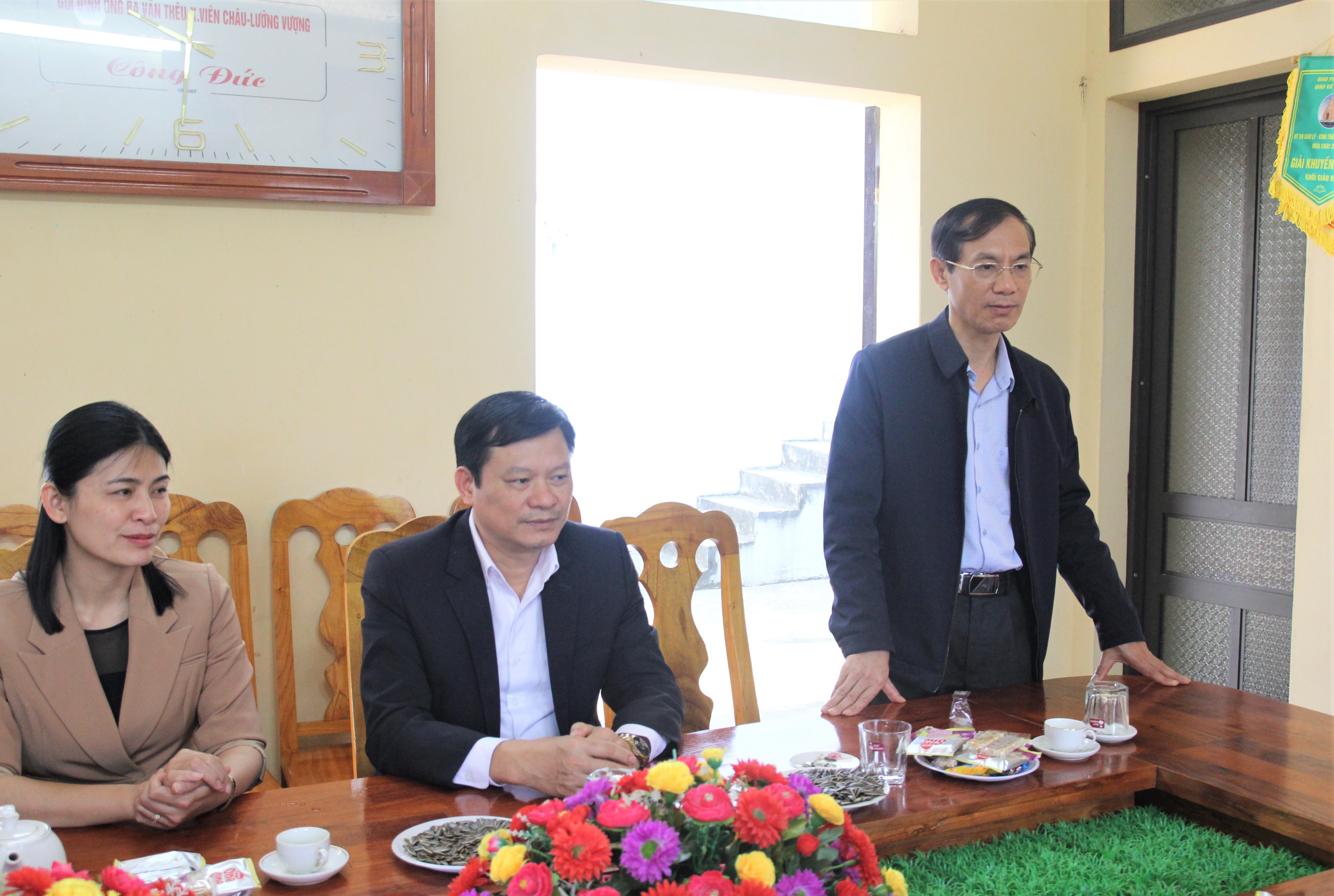 Đồng chí Nguyễn Đình Trung, Bí thư Đảng ủy, Chủ tịch HĐND phường An Tường thăm, chúc mừng Giáo họ Bình Thành.