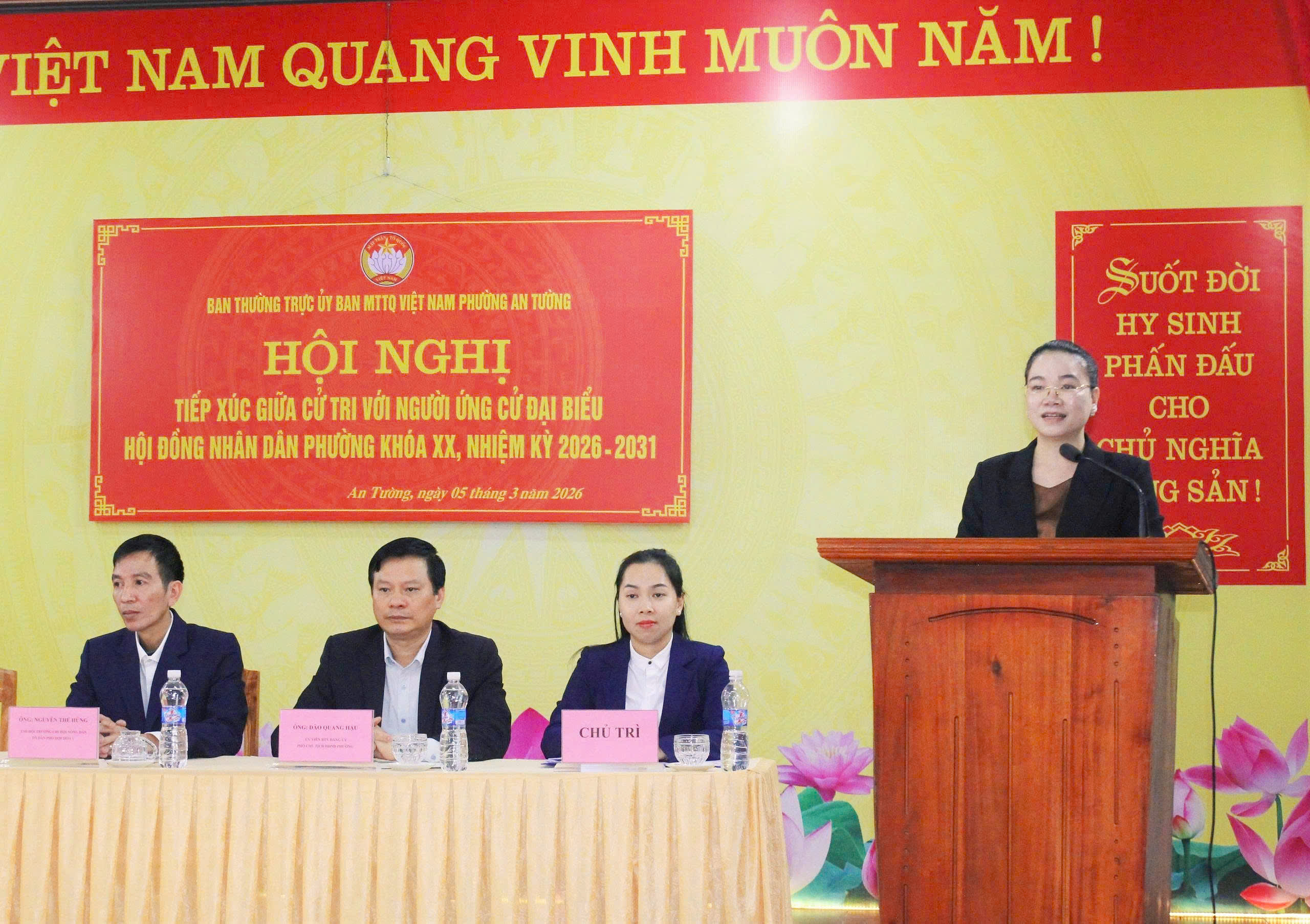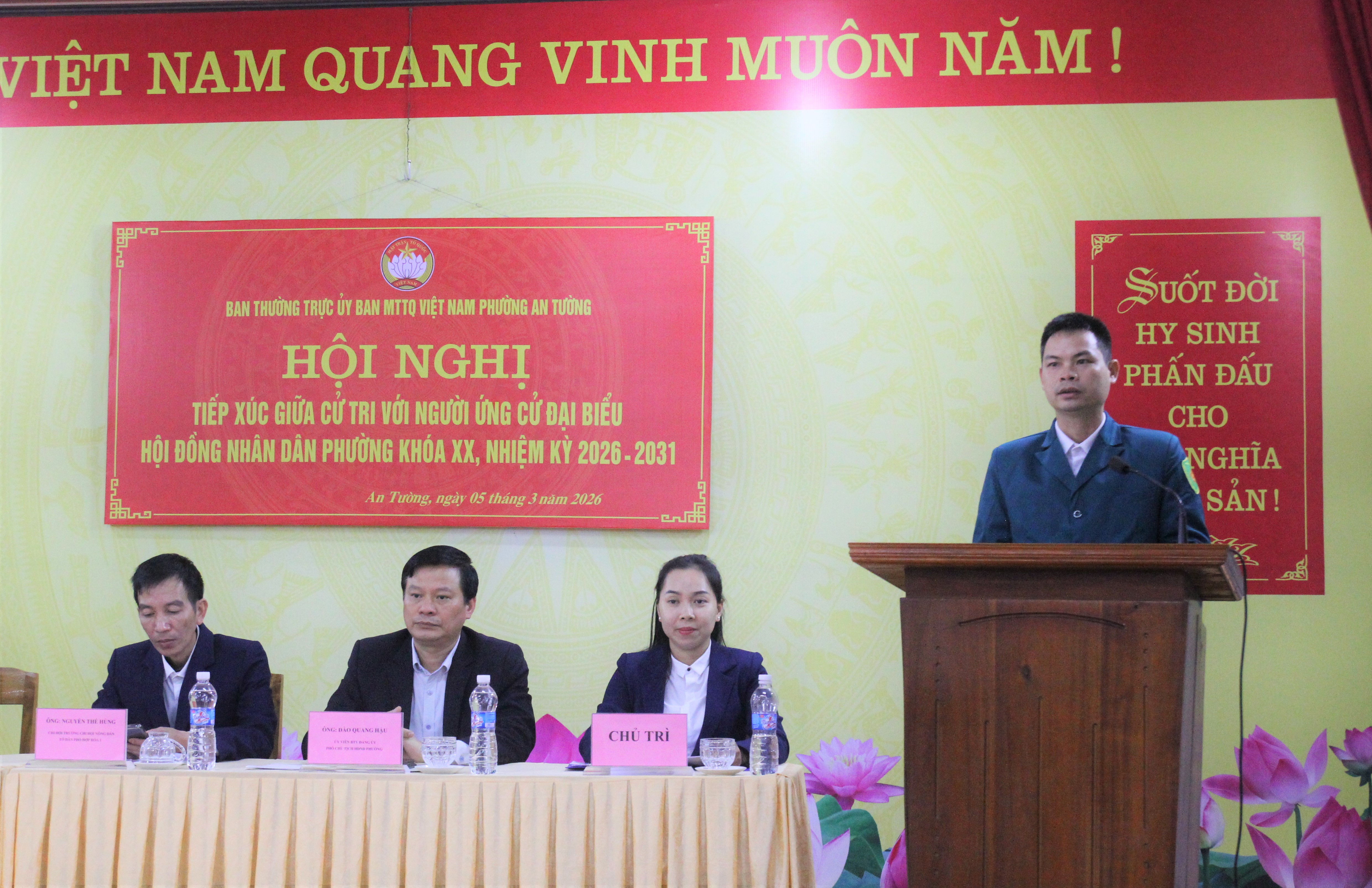 Các ứng viên ứng cử đại biểu HĐND phường An Tường khóa XX, nhiệm kỳ 2026 – 2031 dự Hội nghị tiếp xúc cử tri tại khu vực bỏ phiếu số 19, đơn vị bầu cử số 5 đại biểu HĐND phường.