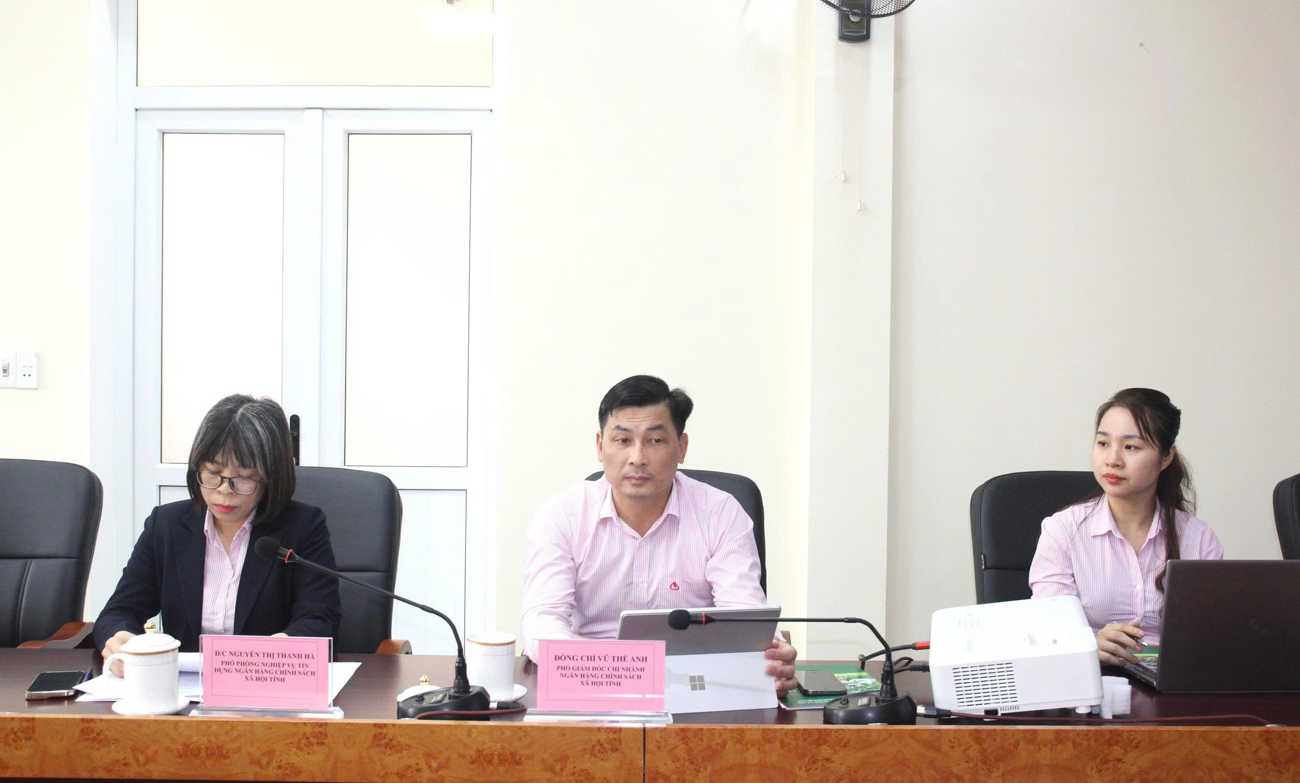 Đồng chí Vũ Thế Anh, Phó Giám đốc Chi nhánh Ngân hàng Chính sách xã hội tỉnh và các cán bộ Ngân hàng Chính sách xã hội tỉnh dự Hội nghị.
