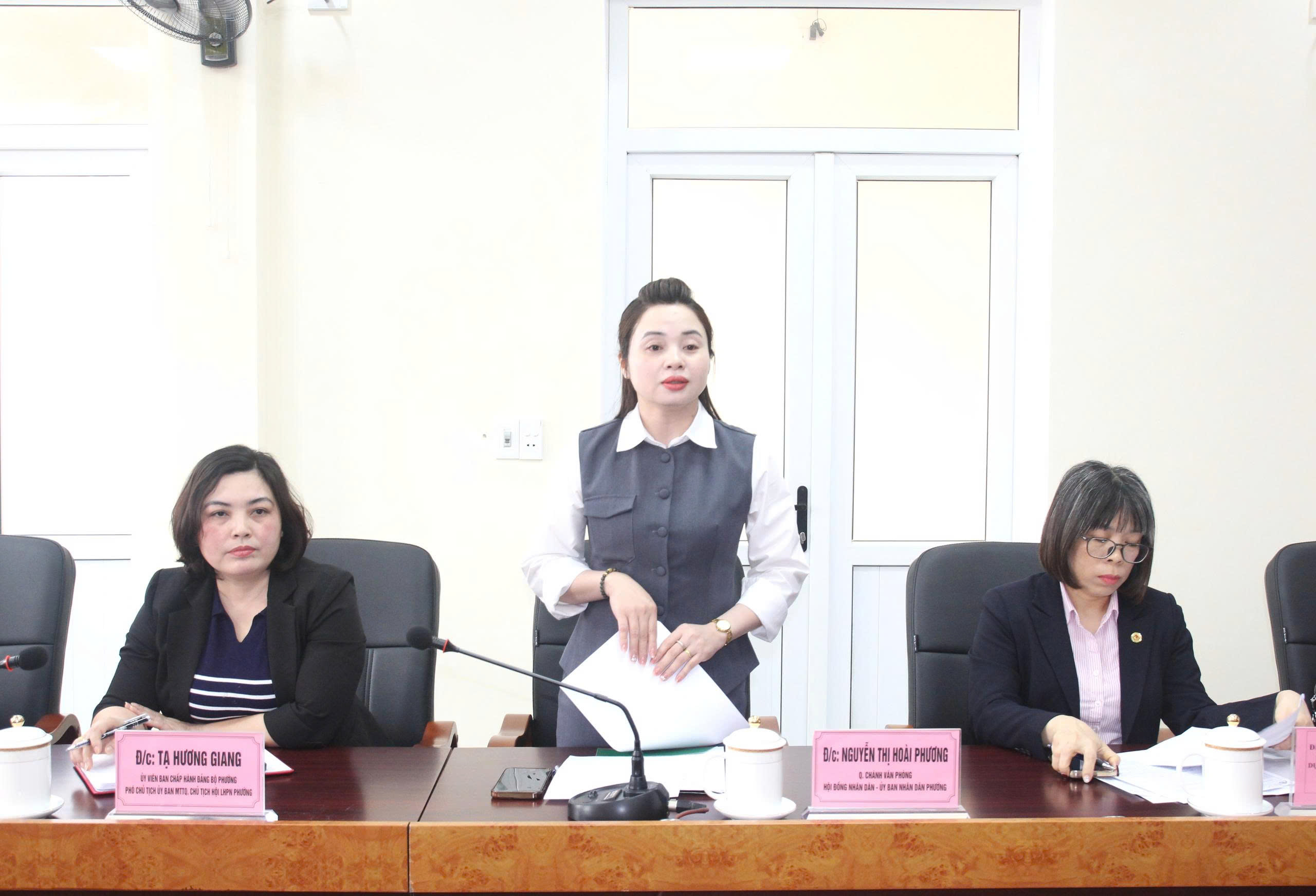 Đồng chí Nguyễn Thị Hoài Phương, Phó Chánh Văn phòng HĐND, UBND phường thông qua Quyết định tại hội nghị.