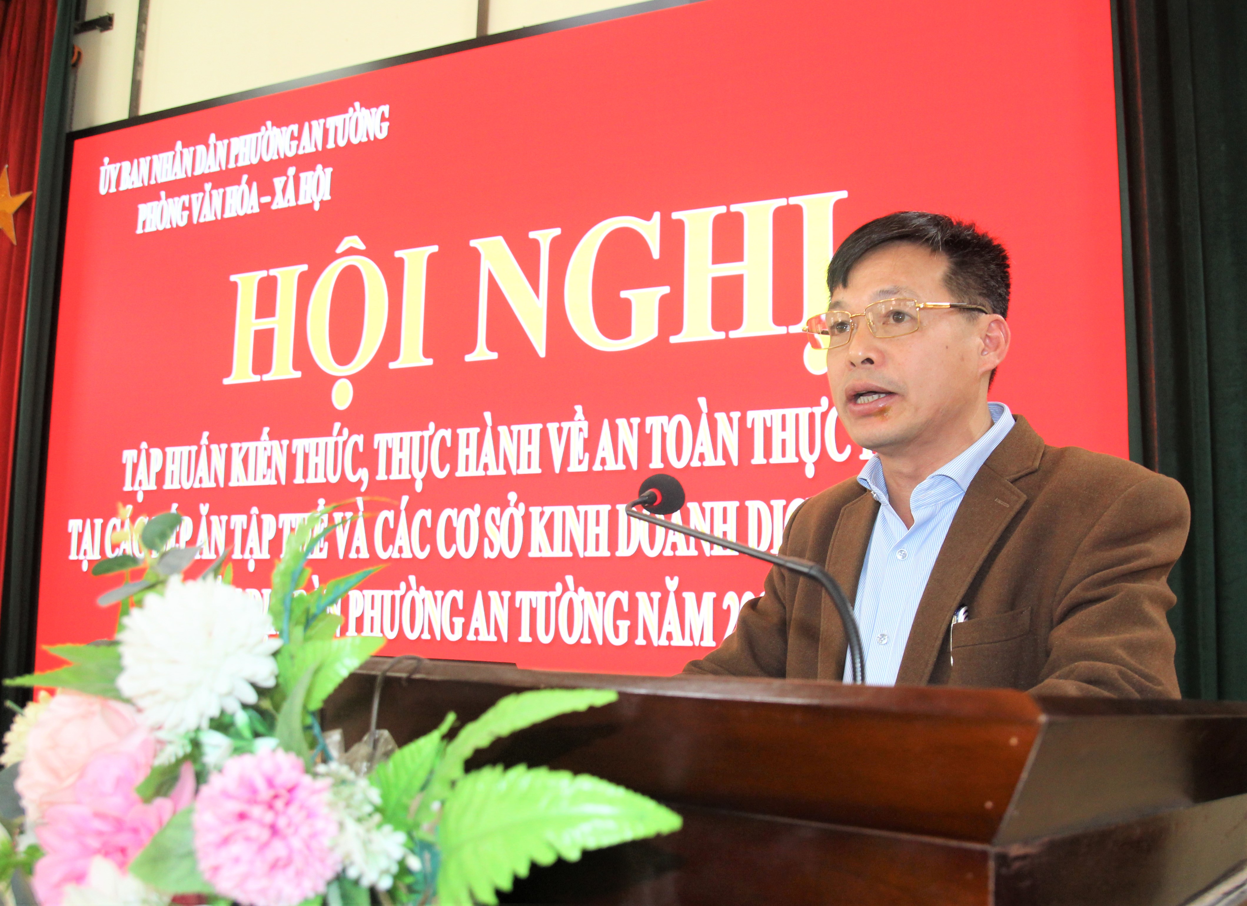 Phát biểu khai mạc hội nghị tập huấn, đồng chí Phó Chủ tịch UBND phường An Tường Lưu Văn Khang nhấn mạnh, thời gian qua, UBND phường An Tường luôn xác định công tác bảo đảm an toàn thực phẩm là nhiệm vụ trọng tâm, thường xuyên, nhất là trong bối cảnh số lượng cơ sở kinh doanh dịch vụ ăn uống và bếp ăn tập thể trên địa bàn ngày càng gia tăng. Bên cạnh những kết quả đạt được, vẫn còn tồn tại một số hạn chế như: một số cơ sở sản xuất, kinh doanh nhỏ lẻ, điều kiện vệ sinh an toàn thực phẩm chưa bảo đảm theo quy định; ý thức chấp hành pháp luật về ATTP của một bộ phận hộ kinh doanh chưa cao; công tác kiểm tra, giám sát có thời điểm chưa được thực hiện đồng bộ, thường xuyên.