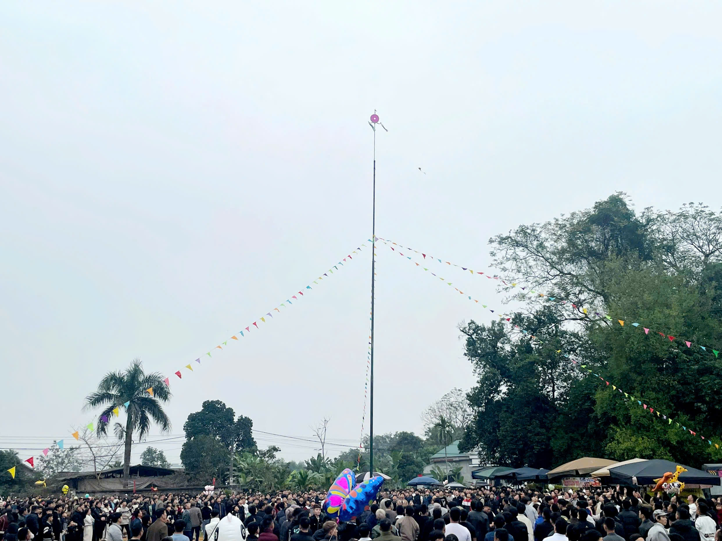 Người dân tham gia tung còn.