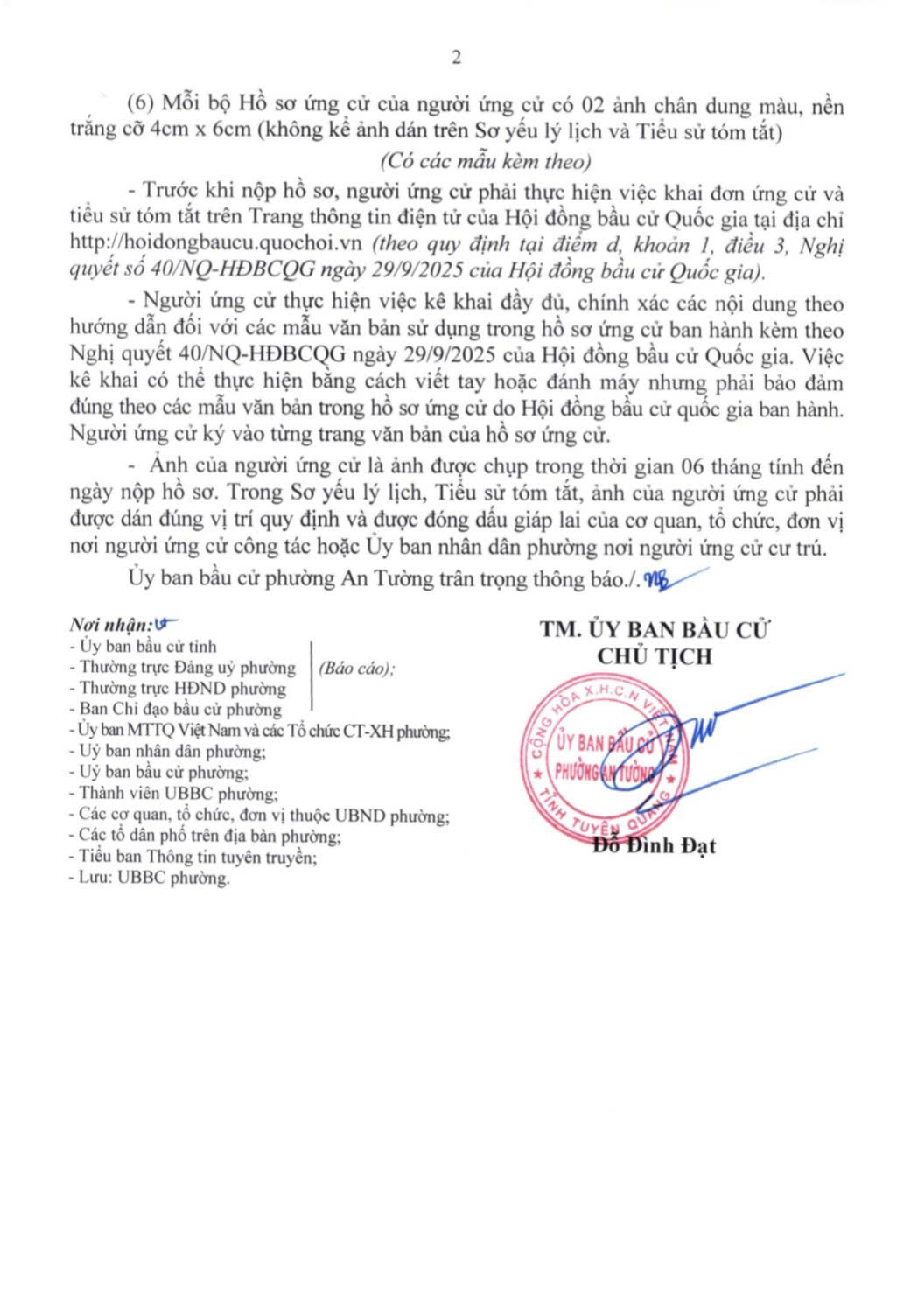 Thông báo của Ủy ban Bầu cử phường An Tường: